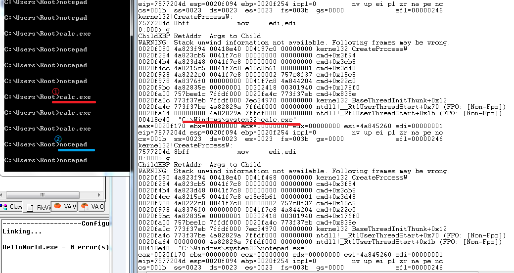 就是想在cmd中启动notepad.exe时断下来。