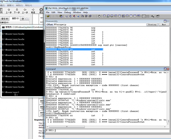 试着用ad清了下别名,反而启动calc.exe都断不下来了,但输出$spat()比较的结果又没问题啊~(如图所示)